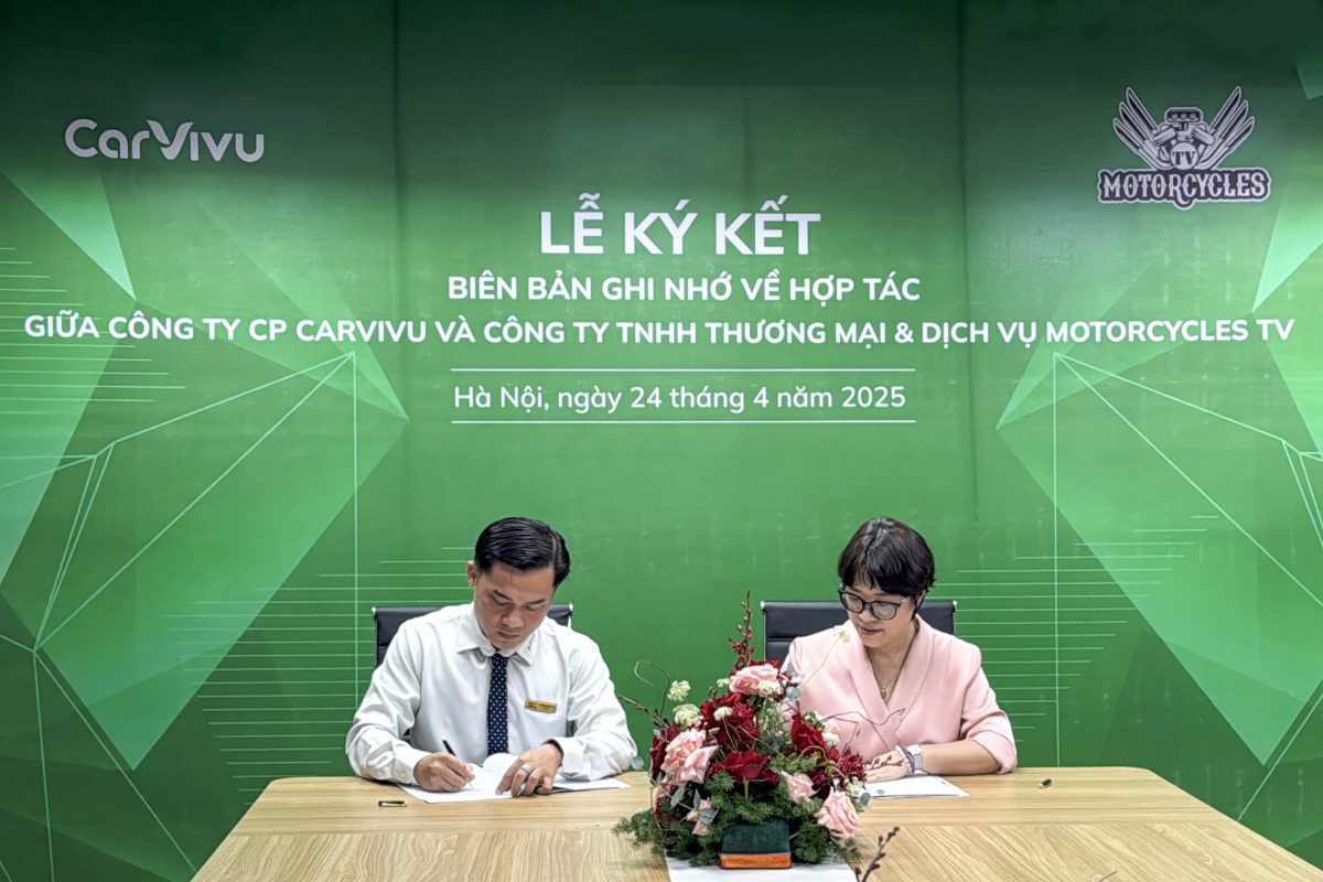 Hà Nội – Hưởng ứng chủ trương của Nhà nước về phát triển bền vững và hướng đến tăng trưởng xanh, Công ty TNHH Thương mại & Dịch vụ Motorcycles TV (Motorcycles TV) và Công ty Cổ phần Carvivu (Carvivu) đã chính thức ký kết biên bản ghi nhớ hợp tác chiến lược vào sáng ngày 24/4/2025 tại Tòa nhà Hapulico Center, Hà Nội.